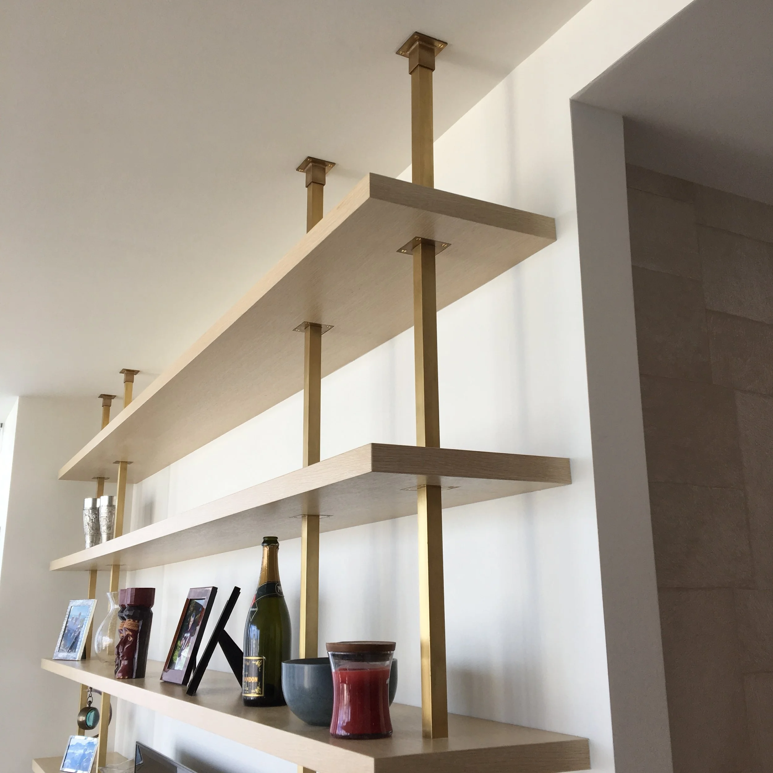A residential project in Philadelphia designed by AD 100 designer, Young Huh. The project features a custom steel niche, brass shelving, and a wine bar, as seen in Veranda Magazine.